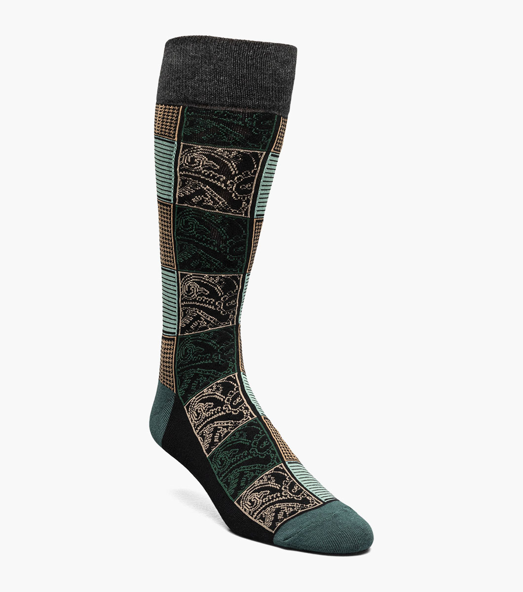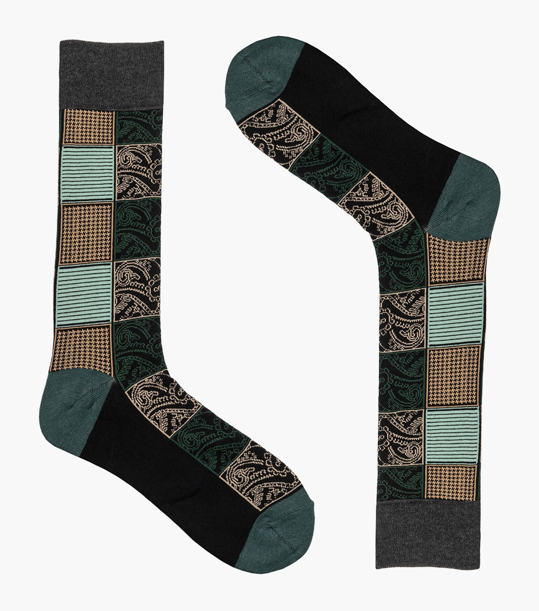 Checkered Paisley Men's Crew Dress Sock